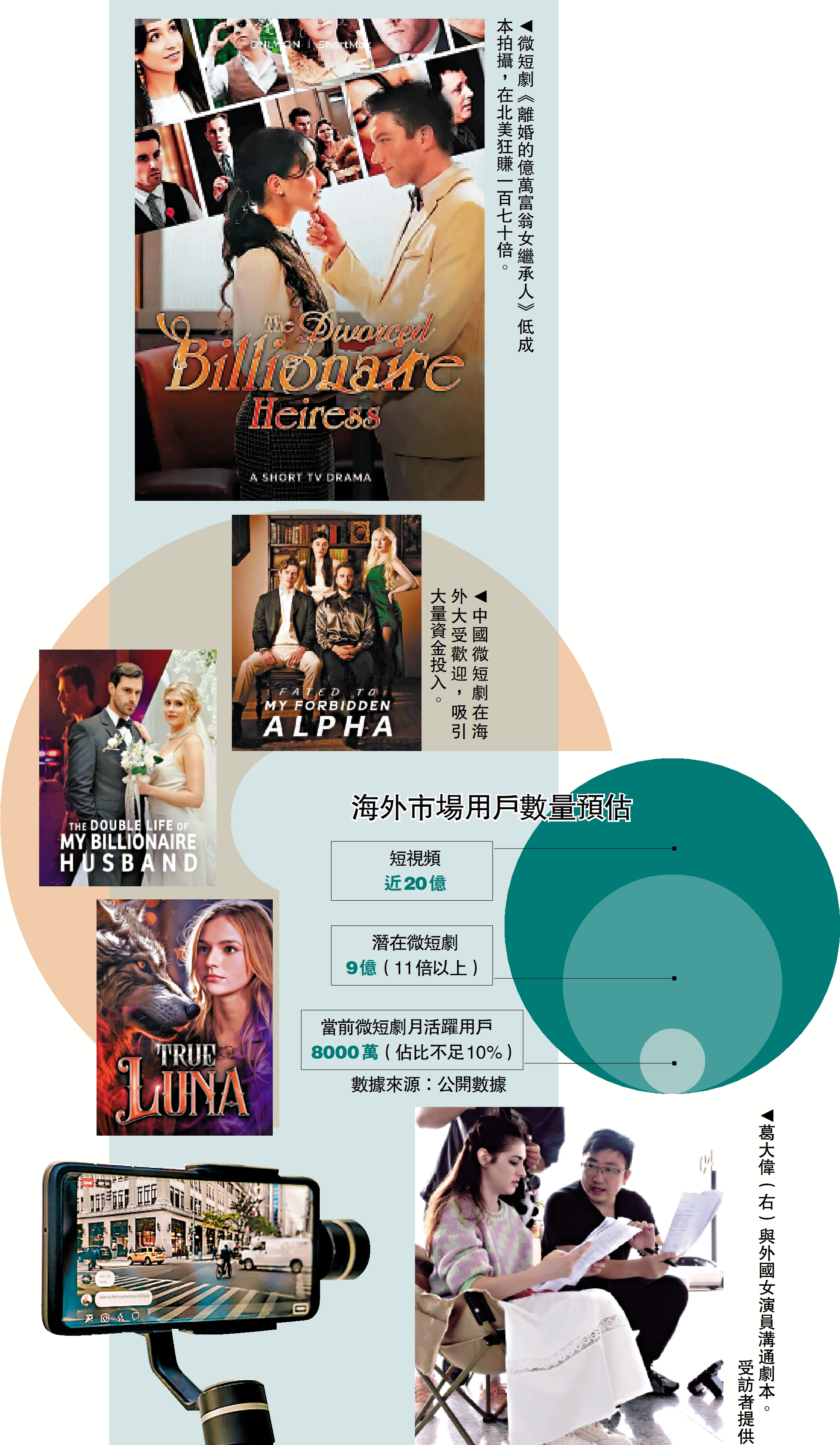 成本降了,沟通却更难。“拍出海短剧时,导演说了不算,翻译员才是关键!”葛大伟笑说,中西思维差异大,详细的前因后果常让外籍演员困惑。拍摄周期仅5至7天,他乾脆直接示范:拿起水杯对女演员说“You, angry”(你,生气),随即泼水喊“Water him”(泼他)。演员立刻会意,顺利完成拍摄。