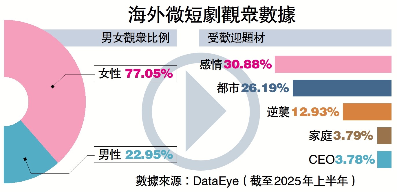微短剧出海平台亦积极拓展IP衍生开发等多种变现途径。“近年来,国家提出文化出海‘新三样’──网文、游戏与微短剧,它们有高度协同性,优质IP或故事可在多个平台共同变现。”南亚鹏指出,一旦此类模式成功,微短剧收入来源将不只依赖用户直接付费,更可透过广告合作与版权经营,建立更稳健、可持续的现金流。