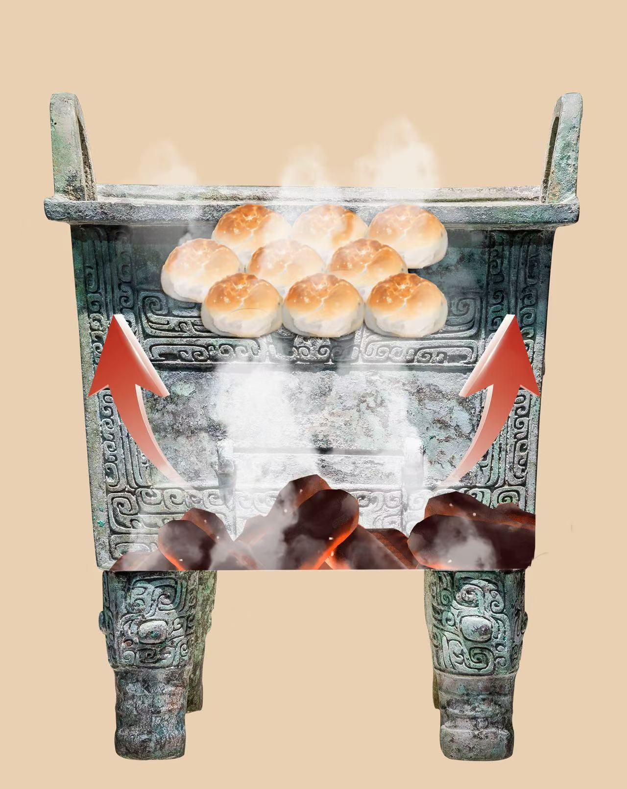 炭火的热量传递到上层容器内