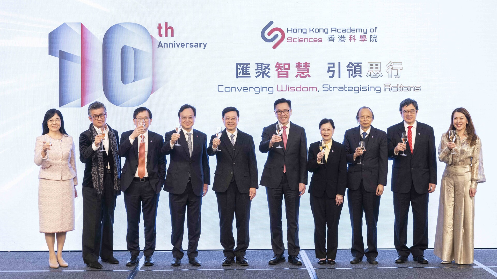 港科院院长卢煜明致辞表示,港科院与香港科创发展同步,透过促进国际交流、政策倡议、推动科普及启发年轻人,显著提升社会对科创发展的重视与支持氛围;多年来亦见证特区政府在政策与资源层面积极投入,为香港科创发展奠定坚实基础、铺垫未来发展道路。他特别感谢时任香港特区政府行政长官梁振英、时任全国政协副主席兼国家科技部部长万钢,以及时任中国科学院院长白春礼的支持,促成港科院于2015年成立;同时感谢香港政府及各界十年来对港科院的支持,并特别致谢创院院长徐立之多年来的投入与带领。