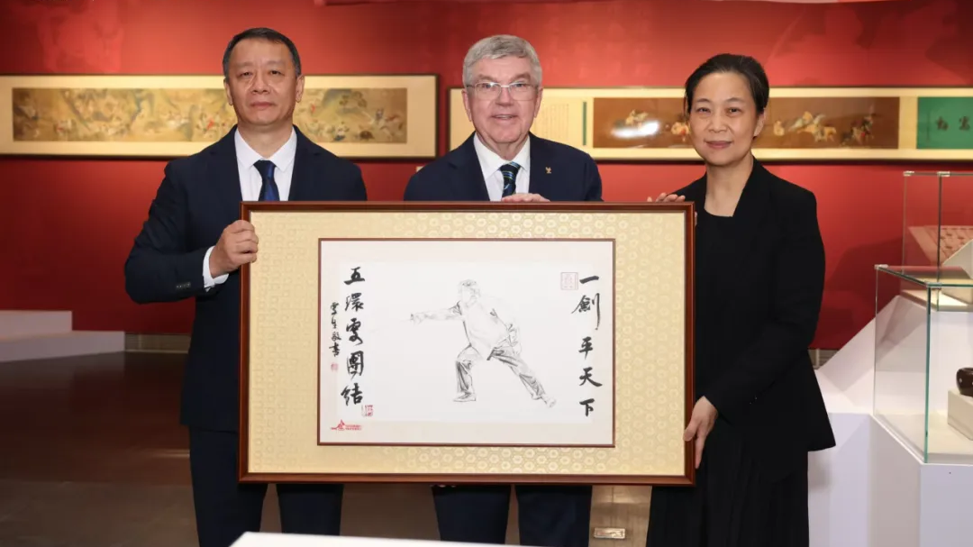 林蓝书记出席十五运会系列艺术展 代表美协和广美向巴赫赠送作品